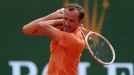 Daniil Medvedev loses his temper during his 6-0, 6-0 defeat to Matteo Berrettini at the Monte-Carlo Masters.