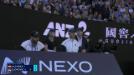 Novak Djokovic hits a stunner around the net but Carlos Alcaraz recovers to claim the point.