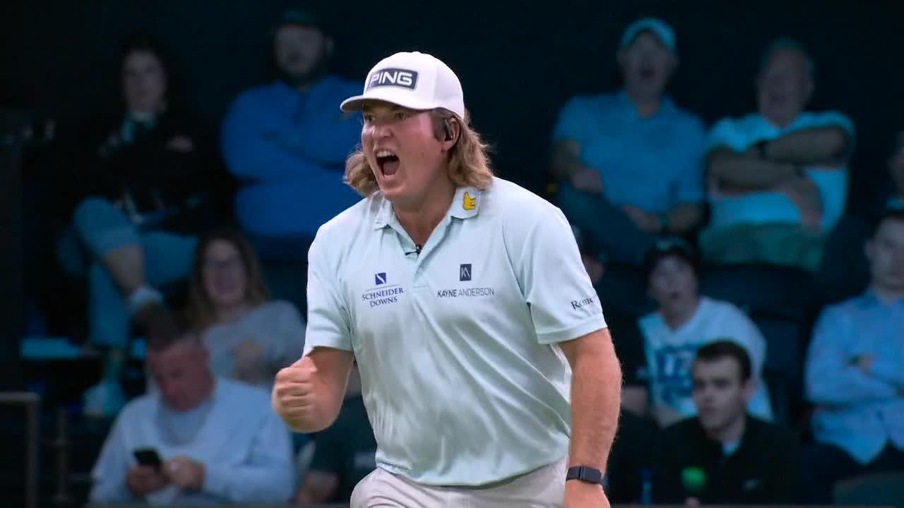 Chris Gotterup makes the putt on the eighth hole, helping Atlanta Drive GC take a 3-1 lead over Boston Common Golf.