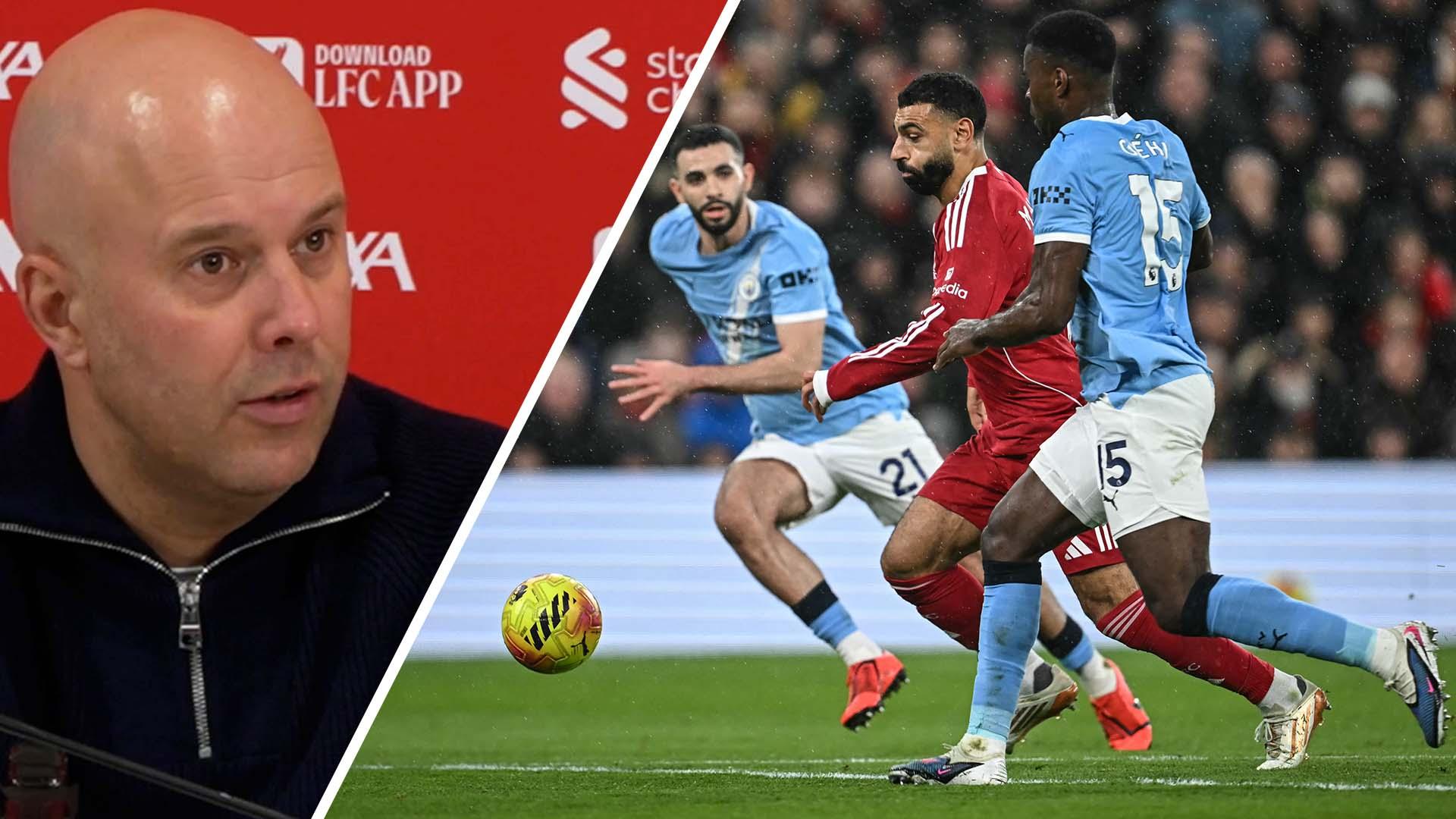 Arne Slot has said Marc Guéhi should have been shown a red card for his challenge on Mohamed Salah in Liverpool's 2-1 defeat to Manchester City.