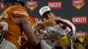 After winning the Cheez-It Citrus Bowl MVP, scoring four total touchdowns against Michigan, Manning makes a big message to Longhorn Nation and takes a bite of a Cheez-It crusted turkey leg.
