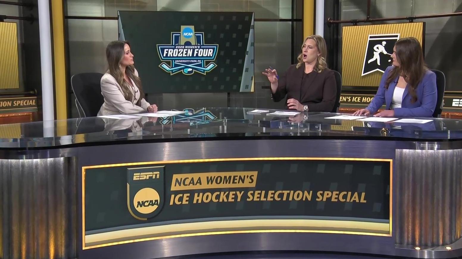 Women's Ice Hockey Frozen Four predictions ESPN's Angela Ruggiero and Paige Capristan discuss which teams are most likely to make the NCAA's women's Frozen Four.