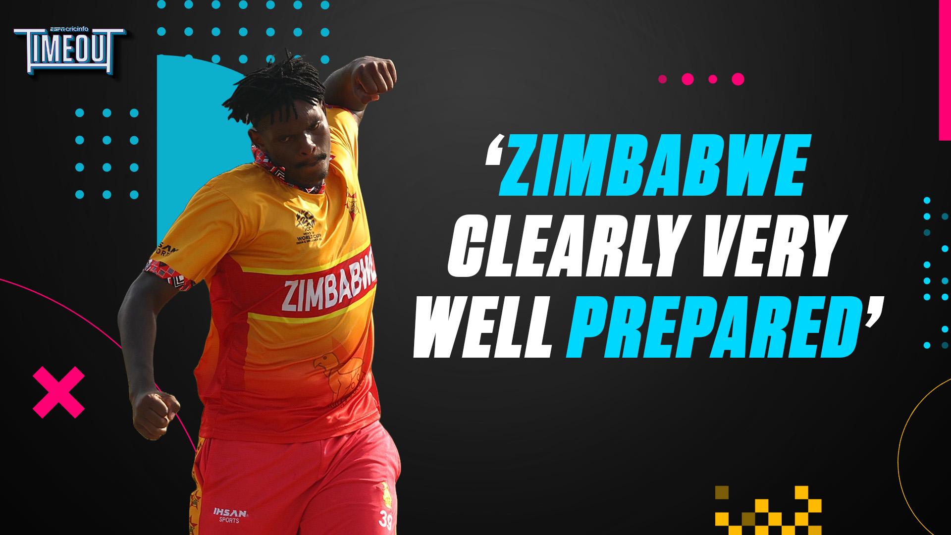 Zimbabwe's three-man pace attack, all well over six feet tall, claimed nine of the ten wickets to fall. This was the first time their fast bowlers achieved this feat in a T20 World Cup match. Muzarabani was the first to strike, taking three of the four wickets to fall in the powerplay. Ngarava picked up one wicket in the powerplay and two in the middle overs, before Evans, with a bit of a sling in his action, took the last three wickets.