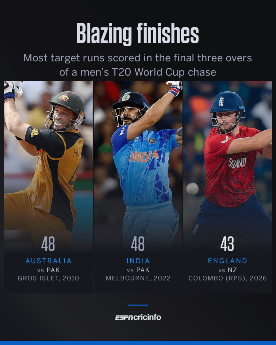 England's openers continued to struggle in chases in the T20 World Cup 2026
