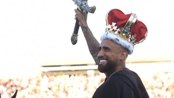 Helicopter to horseback: the most elaborate player arrival you'll ever see! (0:47)