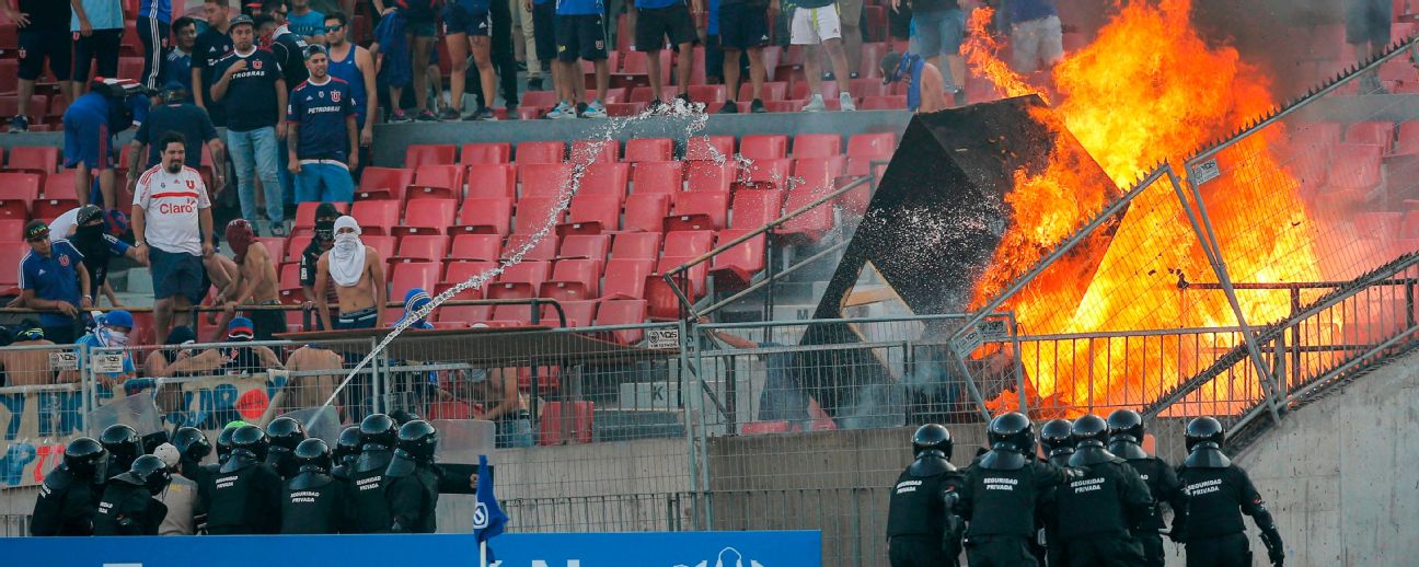 Fan unrest caused the abandonment of the derby match between Colo Colo and Universidad Catolica on Sunday after a player was hit by a firework.