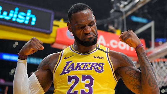 LeBron James puts up 31 points, including six 3-pointers, as the Lakers make easy work of the Knicks 117-87.