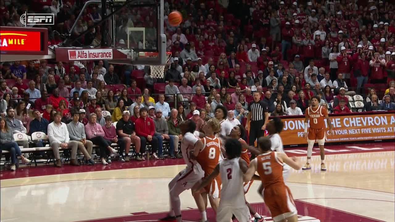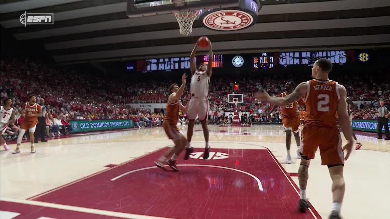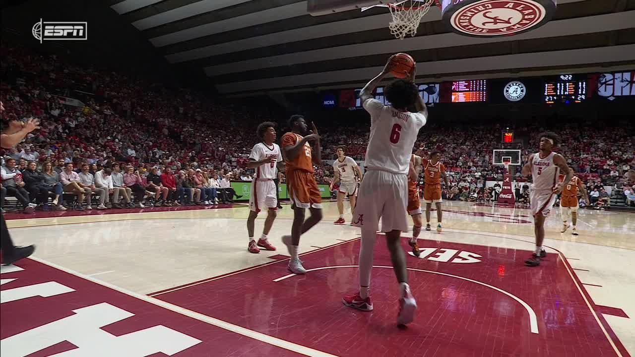 Tramon Mark lays in the fast-break bucket to help secure Texas' upset win over Alabama