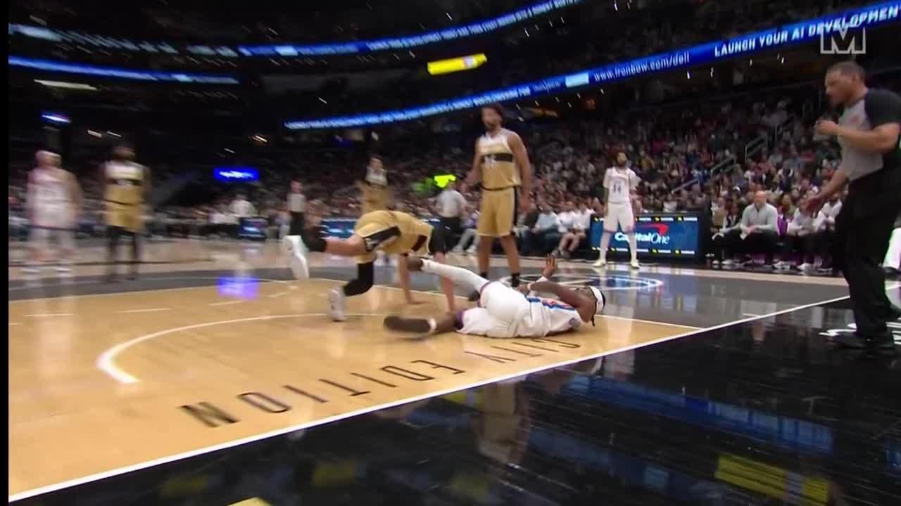Nikola Jokic rocks the rim with powerful flush