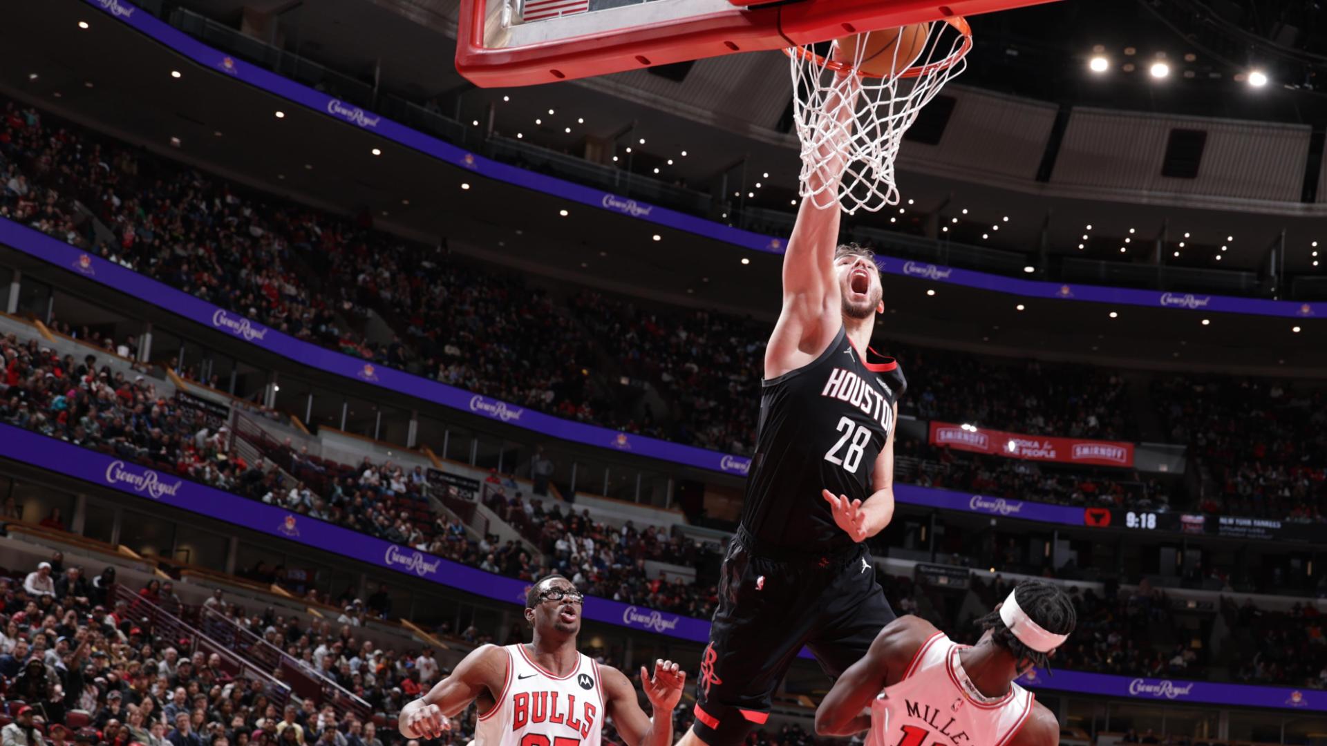 Alperen Sengun attacks the rim and puts his defender on a poster