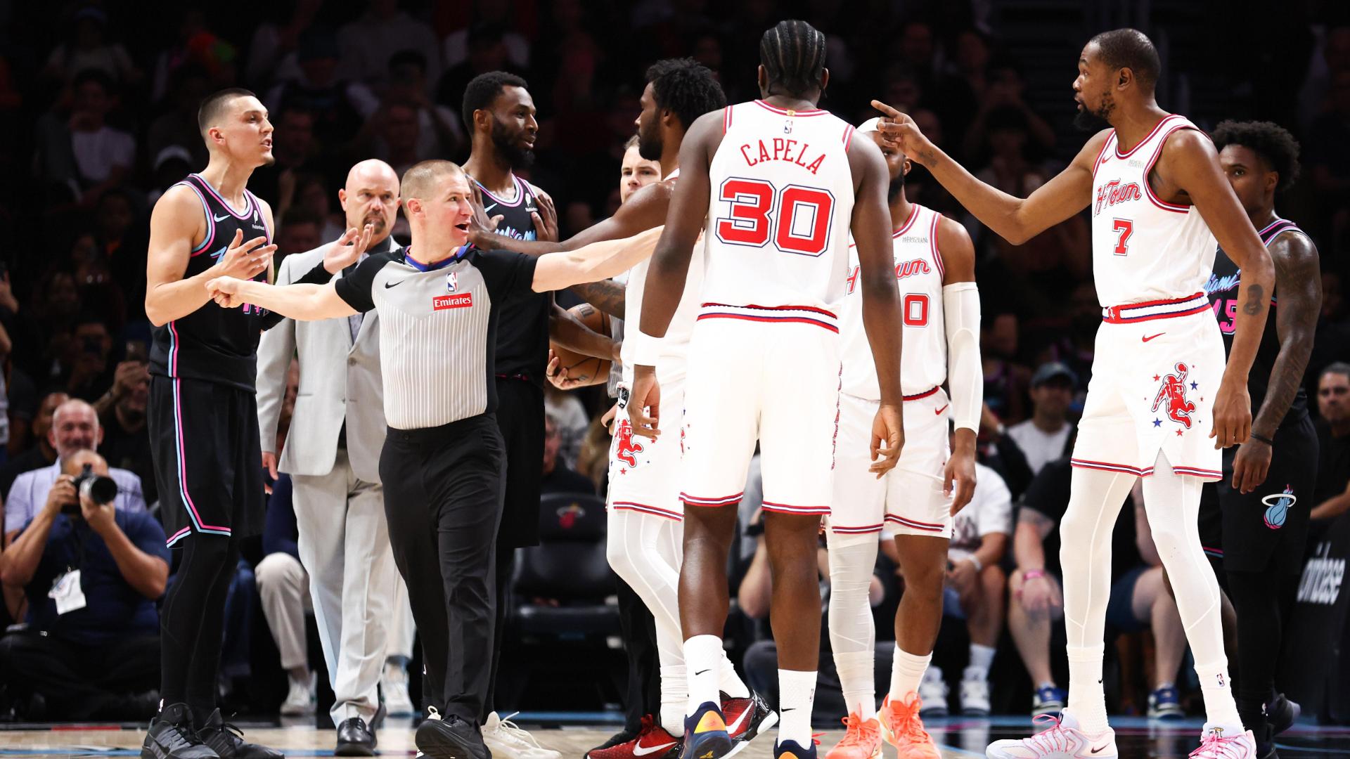 Durant and Herro jaw at each other in first quarter