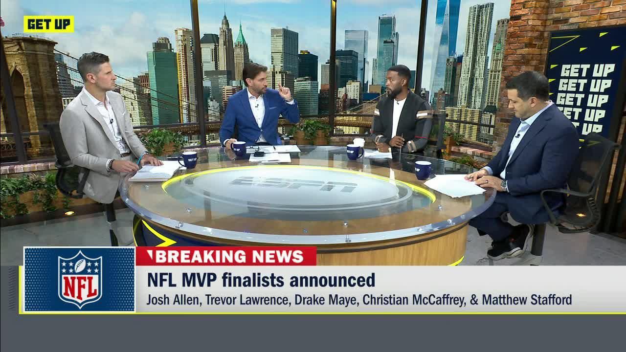 The "Get Up" crew debates the NFL MVP race, with Matthew Stafford and Drake Maye in contention.