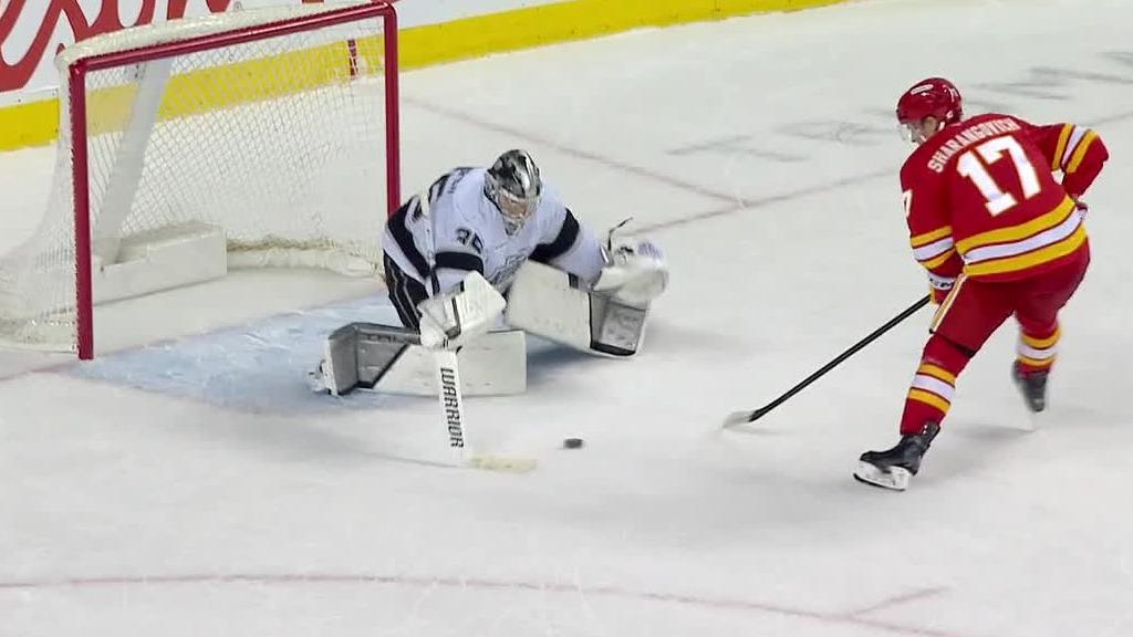 Yegor Sharangovich laughs after accidental shootout winner