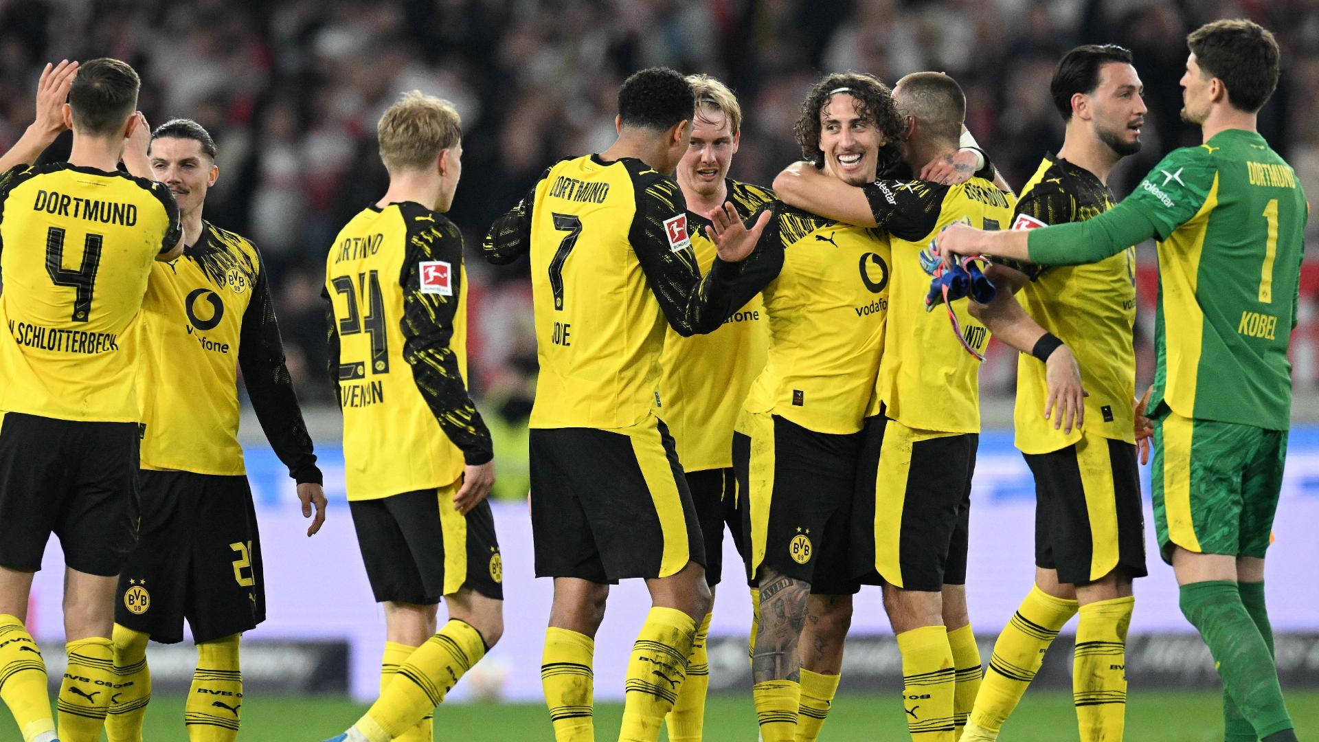 Borussia Dortmund gets added time goals from Karim Adeyemi and Julian Brandt to beat VfB Stuttgart on the road.