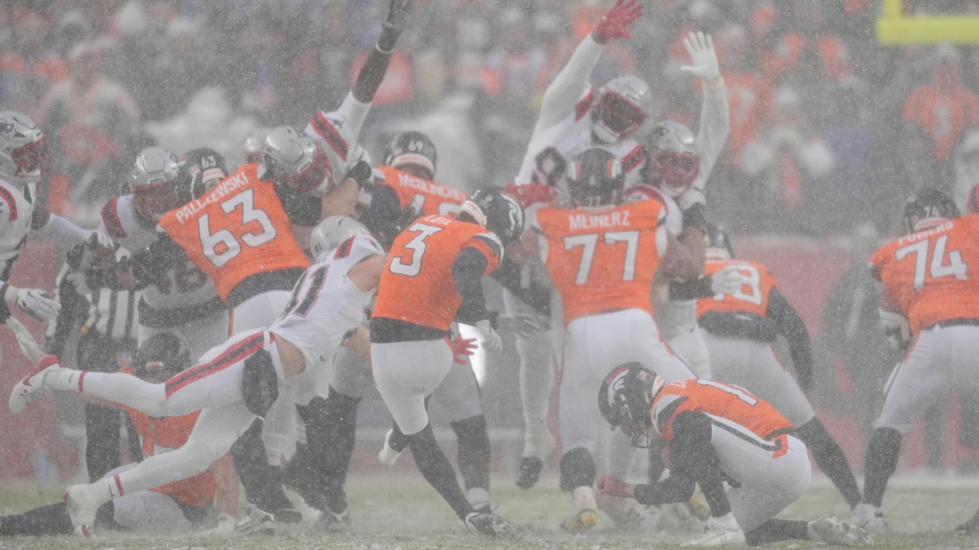 Pats block crucial Broncos FG in the snow