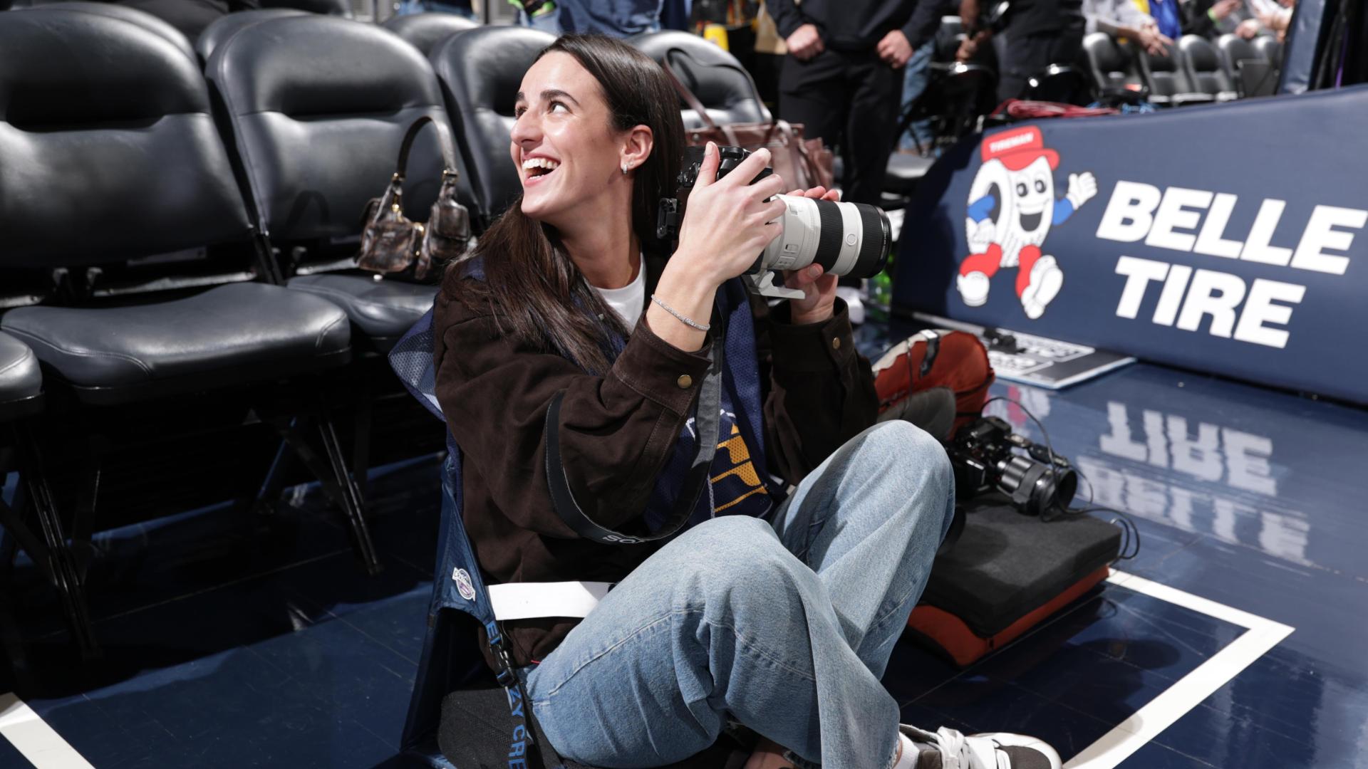 Caitlin Clark photographs Lakers-Pacers game