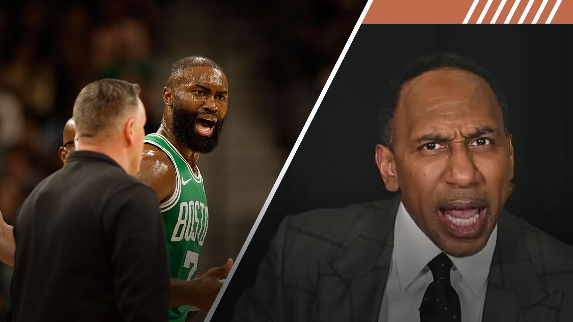 Stephen A. Smith sounds off on Jaylen Brown's ejection for arguing a non-call during the Celtics' loss to the Spurs.